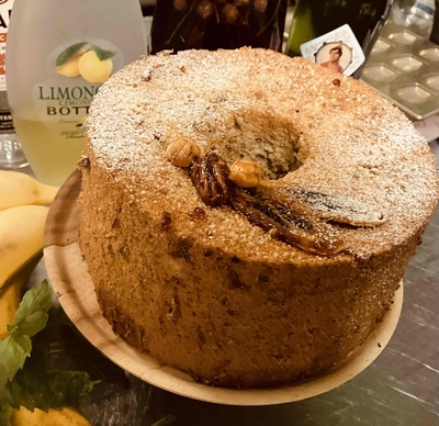 バナナとエピス香るシフォンケーキ 20センチホール ケーキ箱入り(8等分カットも承ります)